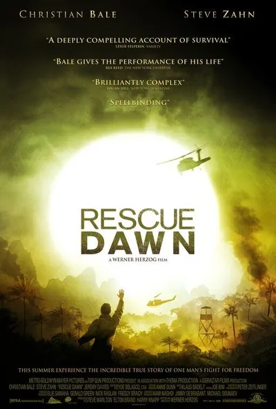 Фильм Спасительный рассвет (2006) — Военный, Боевик, Драма. Режиссёр: Вернер Херцог. В главных ролях: Кристиан Бэйл, Стив Зан, Маршалл Белл. Хронометраж — 2 ч 6 мин.
