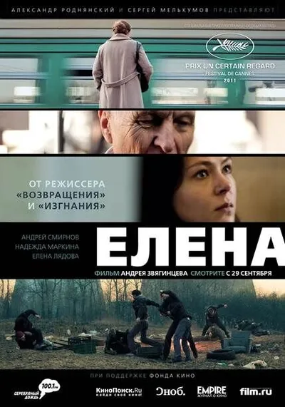Фильм Елена (2010) — Драма. Режиссёр: Андрей Звягинцев. В главных ролях: Надежда Маркина, Андрей Смирнов, Юра Борисов. Хронометраж — 1 ч 49 мин.